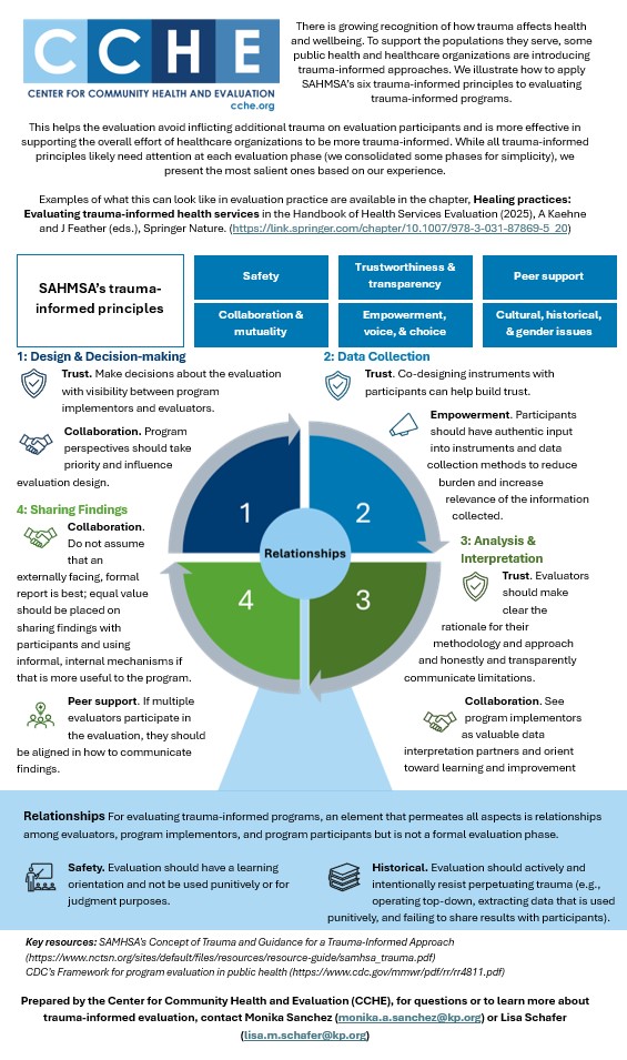 Prepared by the Center for Community Health and Evaluation, for questions or to learn more about trauma-informed evaluation, contact Monika Sanchez (monika.a.sanchez@kp.org) or Lisa Schafer (lisa.m.schafer@kp.org)